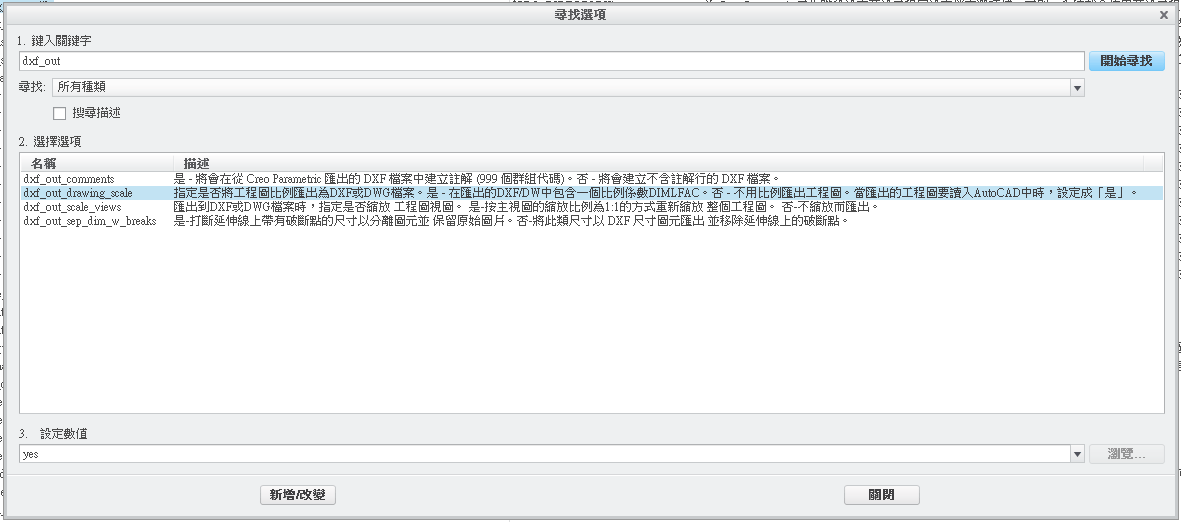 當 Creo 工程圖中視圖比例有可能是 1:2 或 2:1 或是其他,但是當轉出 Dwg / Dxf 想要把比例控制為 1:1 時,可控制下面兩個 Config.pro的值。