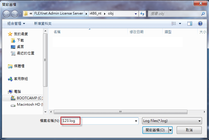 123.log 請手動如下圖打上文字, 不一定要123 任何文字都可以。完成後開啟舊檔即可….