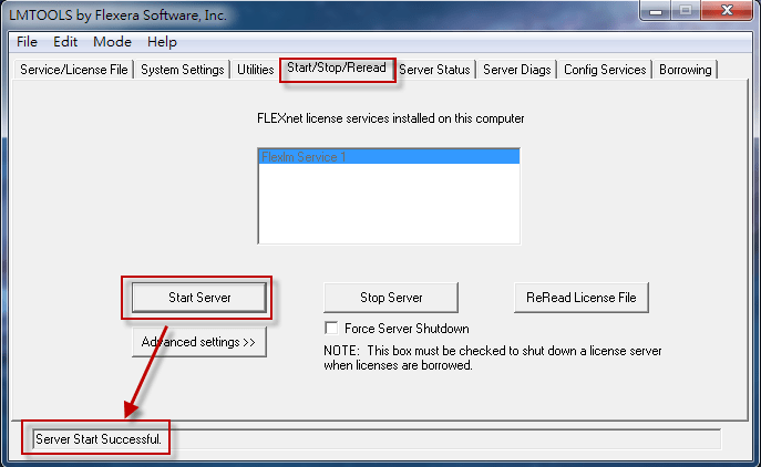 Step-3 : 在 Start/Stop/Reread 標籤中點選 Start Server,檢視左下角是否有啟動成功。