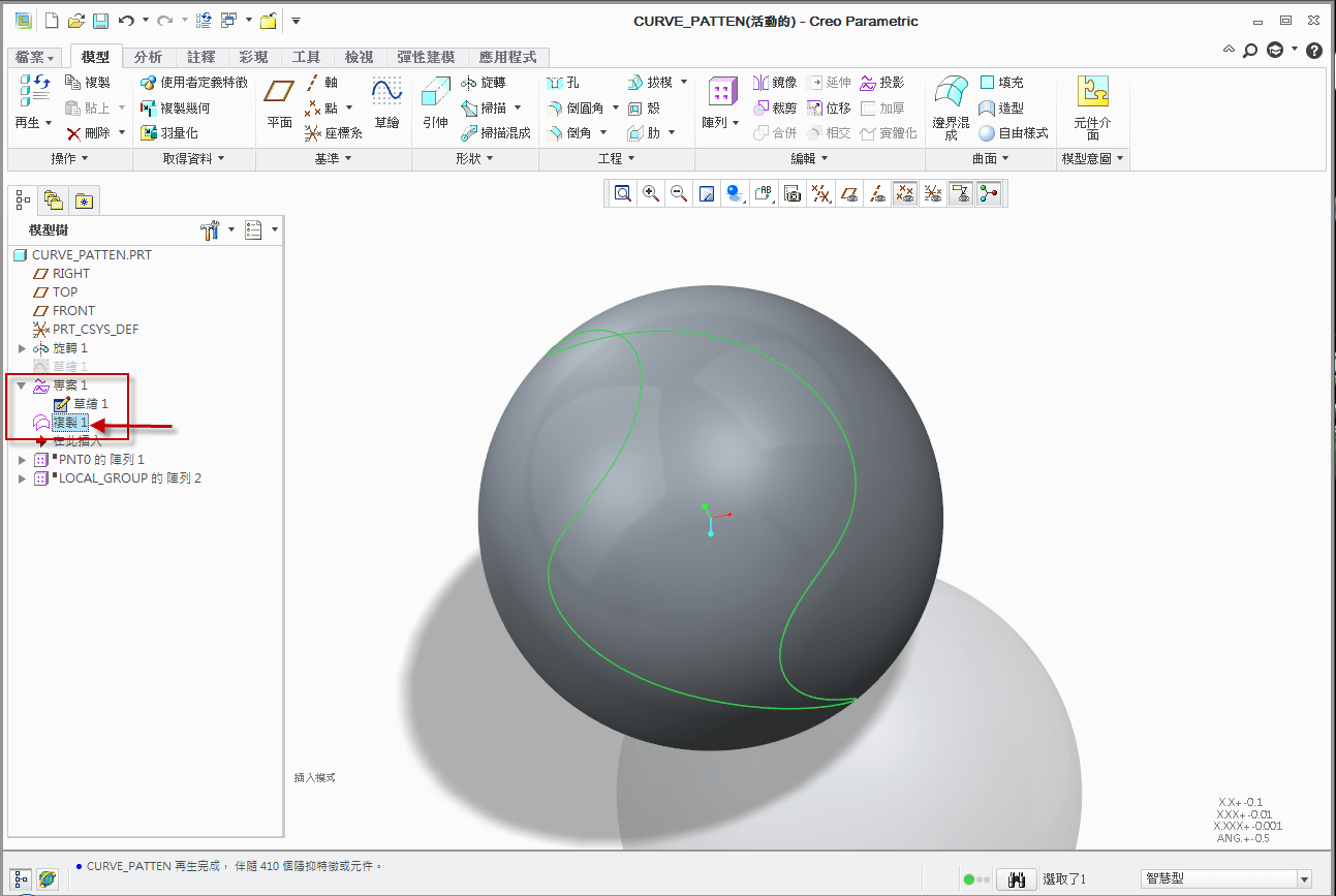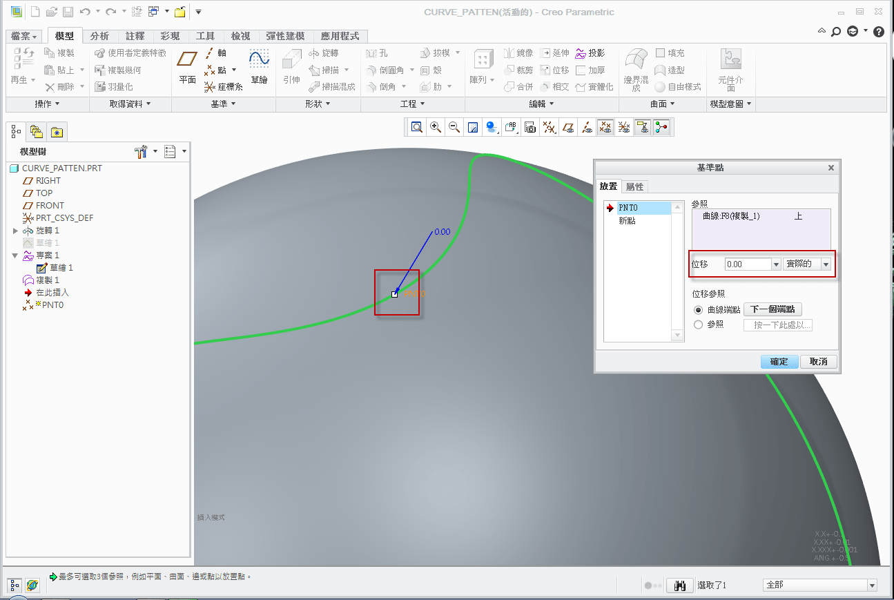 Step-1 : 先製作需要的曲線在曲面幾何上。