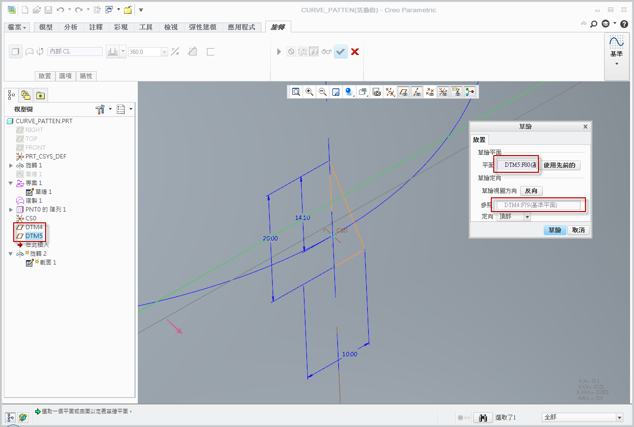 Step-6 : 選取剛建立出來的基準特徵來當作繪圖的平面與方向參考。
