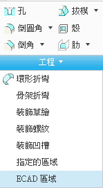 第一種是在3D下製作的EACD區域剖面,工具位置在模型標籤中的"工程"功能區中最下方,ECAD區域。