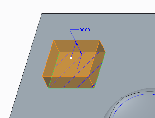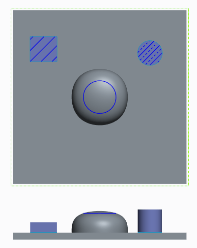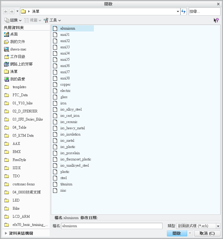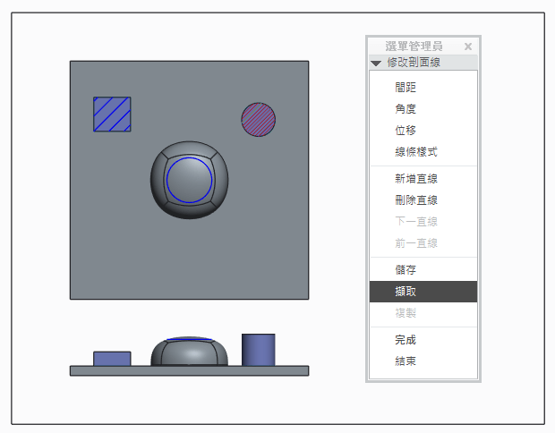 使用方式 必須先選取 平面的幾何、草繪標籤中繪製的封閉幾何迴圈,選取到才能使用,變更剖面線樣式與第一種設定一樣。