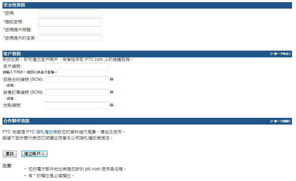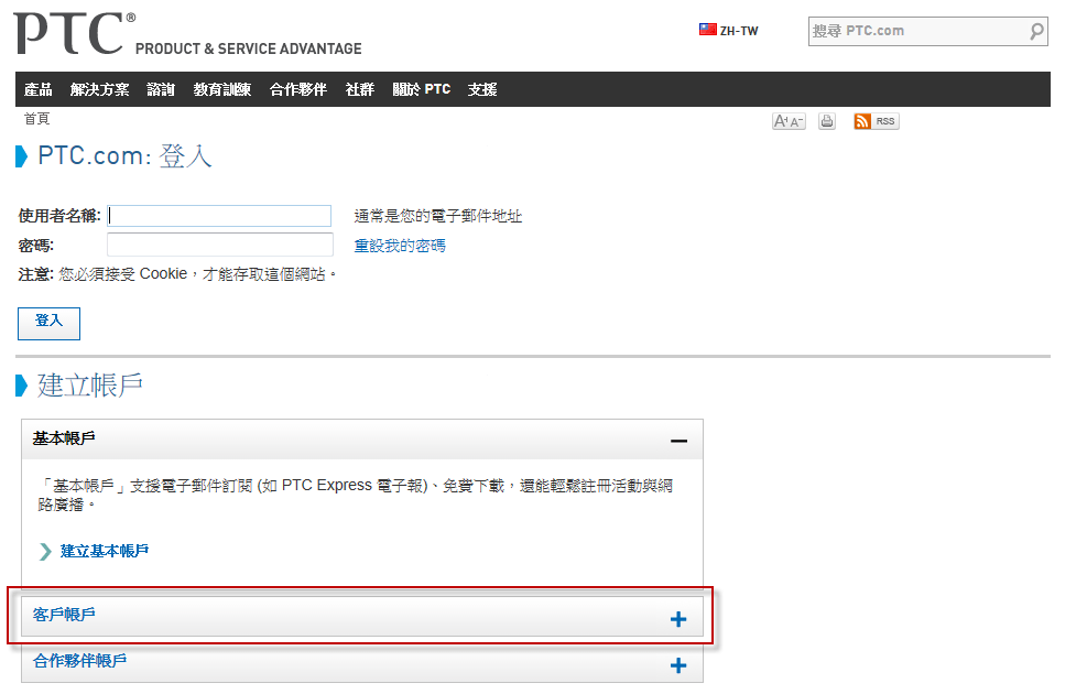 PTC.com 客戶帳號申請