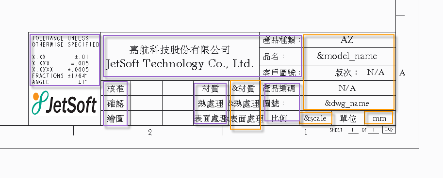 是在製作工程圖的框架、表格、表格參數、文字及文字參數