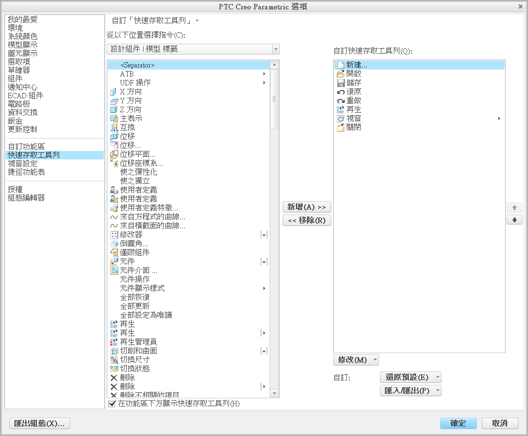 - 將常用設定設為預設請參考模型樹組態參考篇。