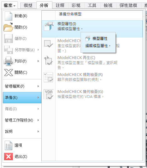 都確定好單位後關閉以上視窗,切換到分析標籤 > 質量屬性