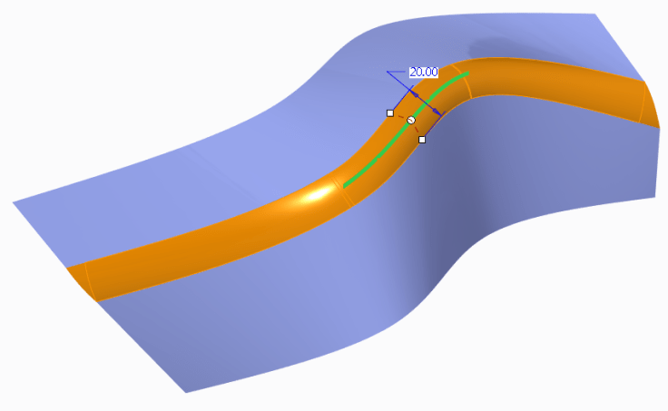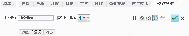 「骨架折彎」 會沿骨架折彎全部所選幾何,以符合骨架長度。