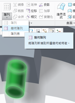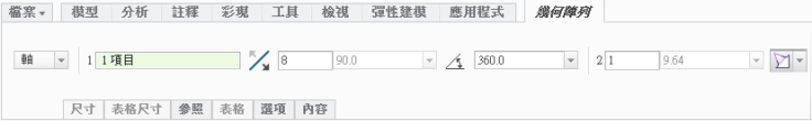 此功能與模型標籤中的幾何陣列相近,主要方便在彈性建模中直接可以使用陣列的功能。