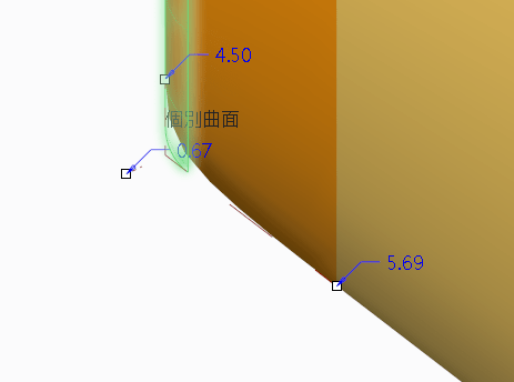 辨識倒角 > 辨識過的倒角,當一平面拖曳時,倒角幾何不會被吃掉。