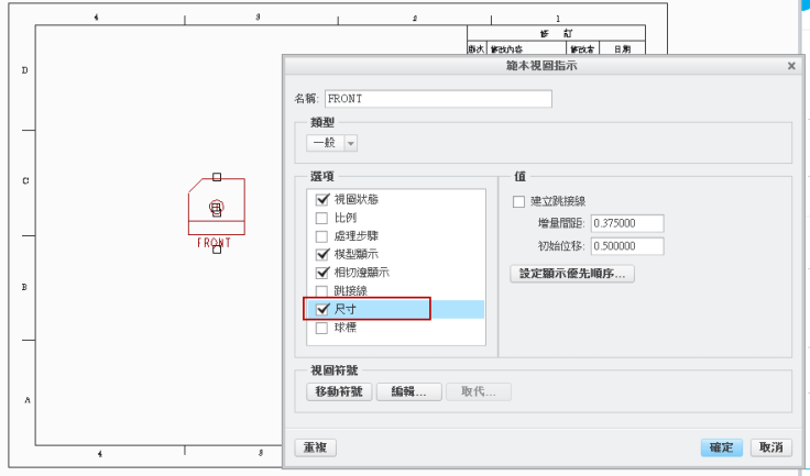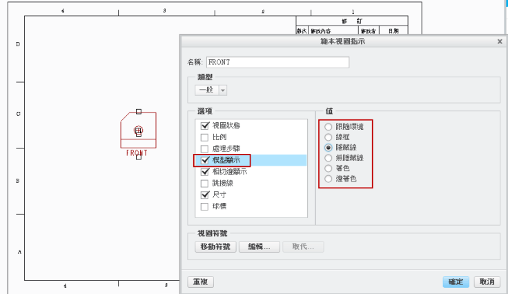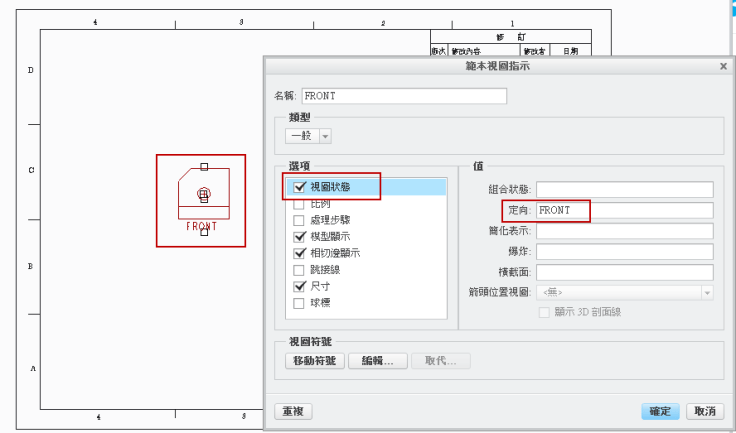建立第一個視圖,注意定向視角為零件視角中有的定向名稱。