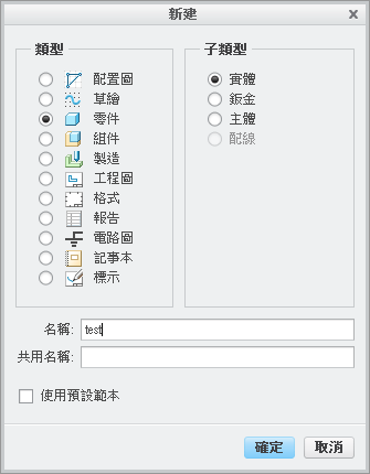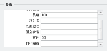 例如未來開新零件要自己輸入直徑及長度名稱得參數,指定在後面會提到用途。