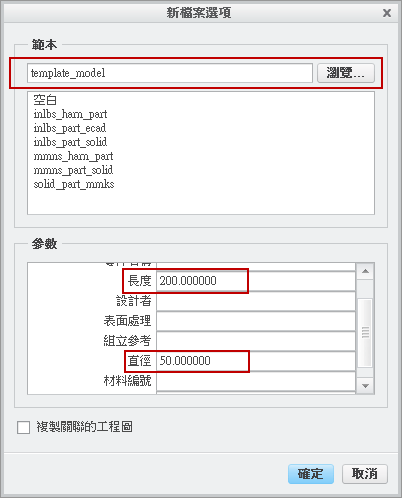 瀏覽範本路徑,注意看參數可以直接輸入當下需要的尺寸了。