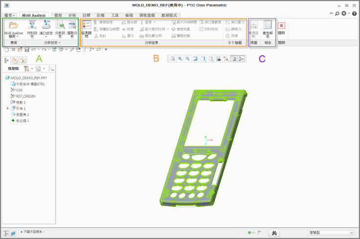 Creo Mold Analysis Extension 簡稱為 CMA,取代 Creo 3.0 M010之前版本 Creo Plastic Advisor產品。
