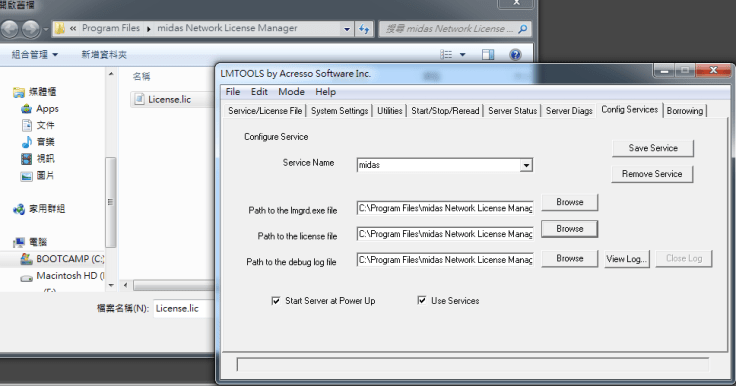 Path to the license file : 指向授權檔License.lic(此檔必須在Lmtools同資料夾中)