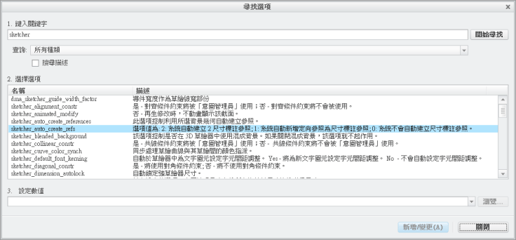 - 1 : 系統自動新增定向參照為尺寸參照標註
