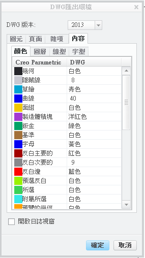 點進設定後 內容可以見到有四種類型佈局 顏色、圖層、線型與字型。
