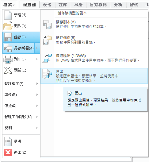 在工程圖另存新檔的匯出,可以匯出多種不同格式。
