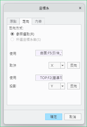 在定向標籤內可以設定選取的面或基準面是何方向