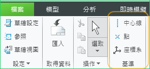 在草繪中基準群組裡面可以看到中心線、點及座標系。