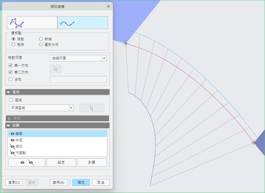 診斷中建議可開啟曲率來做檢視,確保曲線的品質。