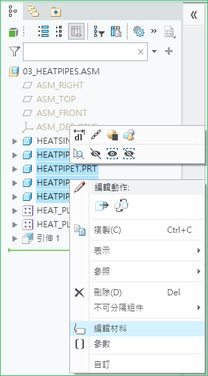 如果在組件當中有數個不同模型但相同材質可以複選起來後,右鍵-編輯材料。