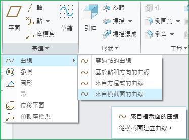 是利用剖面截面來擷取曲線,關鍵在製作剖面時要選取包括所“有”面組或包括所“選“面組,才能製作出來喔,它可以在實體或面組上擷取出來。