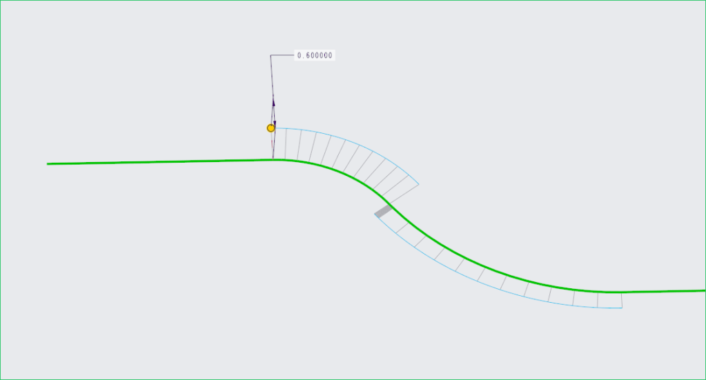 另外曲線在貼上的過程中,頭尾兩端有黃色點點可以拖曳距離或直接輸入尺寸位移值,延伸或縮短的距離都可以。