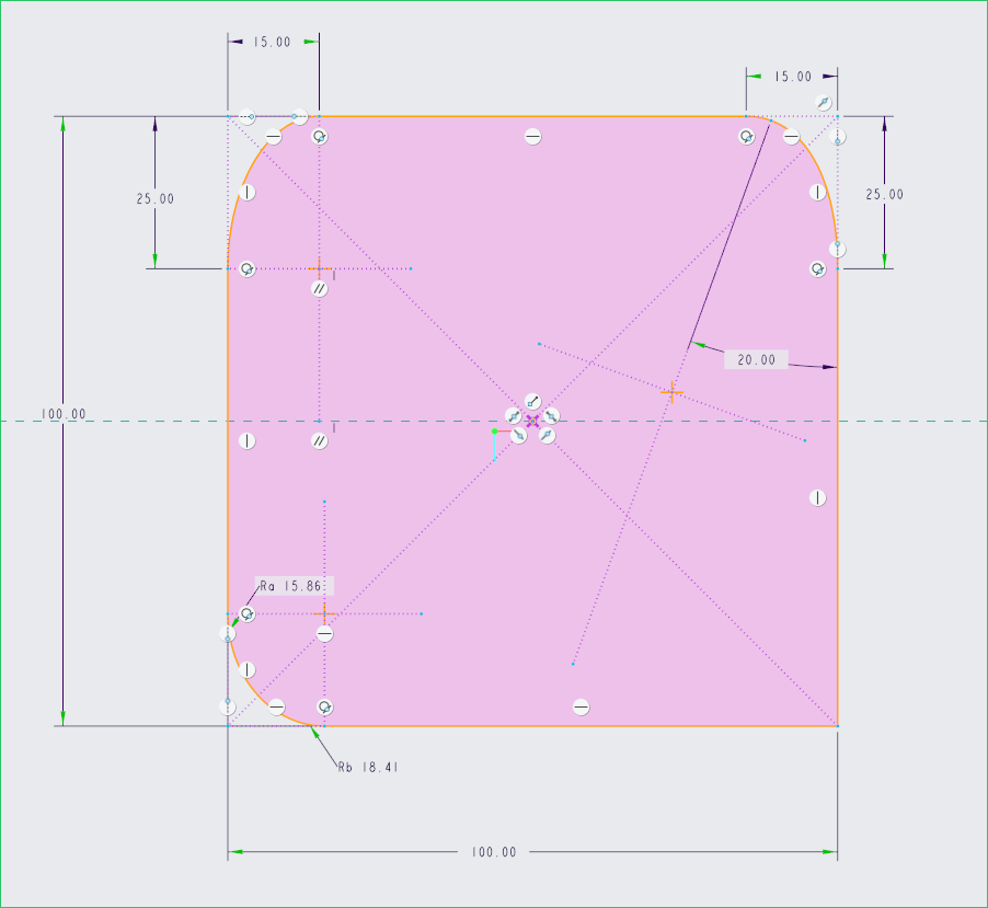與圓角的方法類似,在幾何落點處是您一開始的尺寸大小基礎。