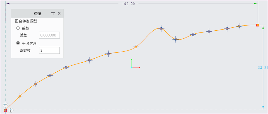 平滑處理:使雲規線更加平滑,使用時可以使用同個奇數點按幾次enter,在頭尾端點的第三點中所有點位最後會拉成一平直線。