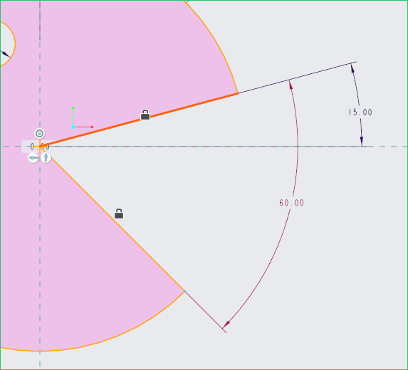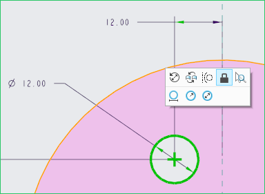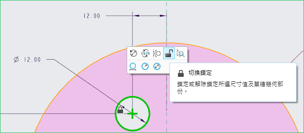 在草繪過程中如果有重要的幾何或尺寸擔心被其他變更而有所影響,此時可以使用鎖定的功能來固定住尺寸或幾何。
