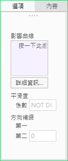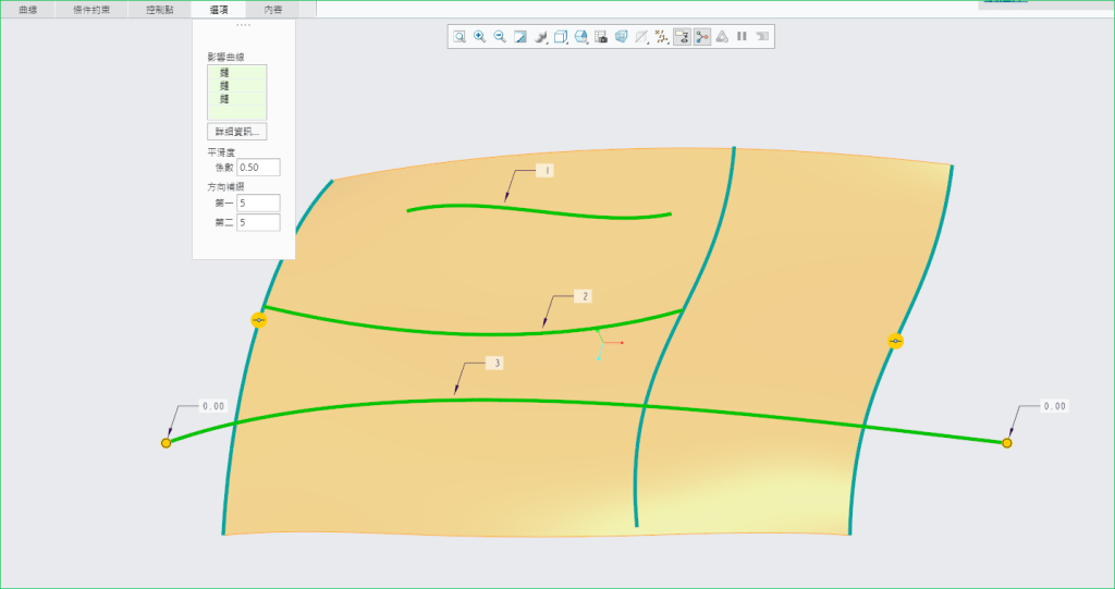 在邊界混成內選項標籤中可以讓您增加影響曲面外型的影響曲線。
