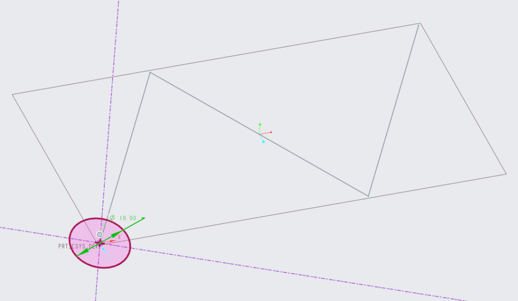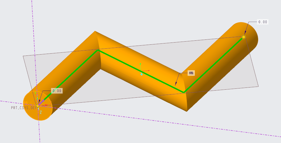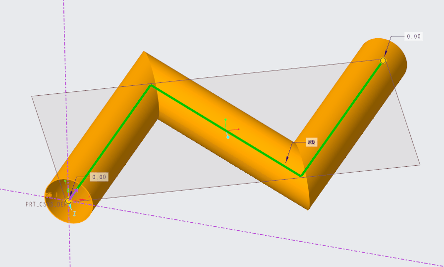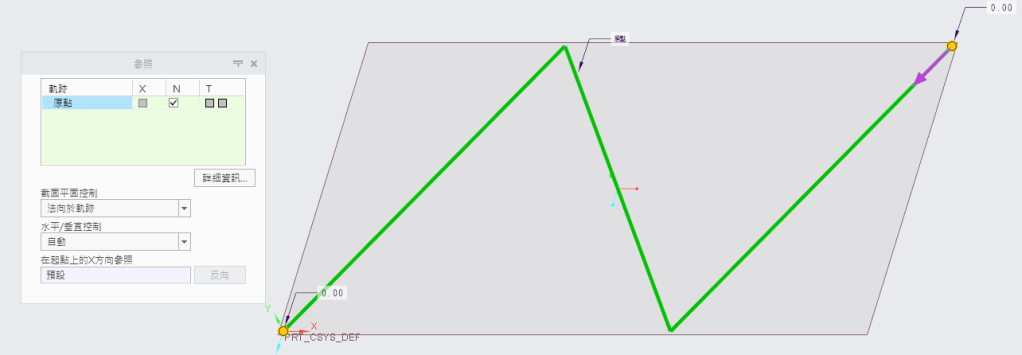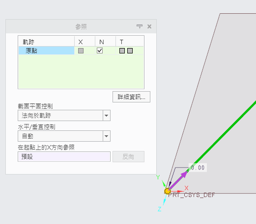 有掃描軌跡線後可以進行草繪的繪製,草繪平面會自動法向於軌跡起始點。