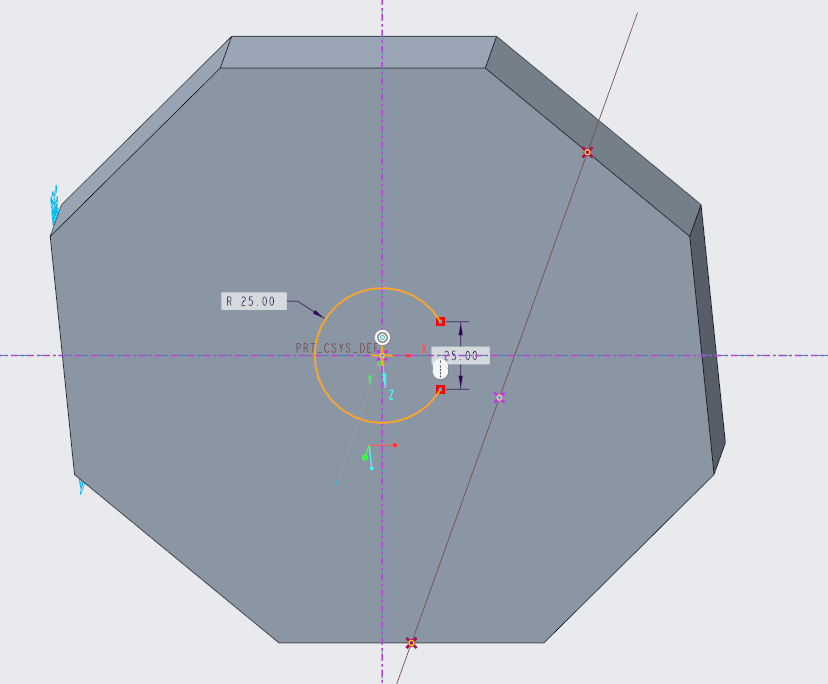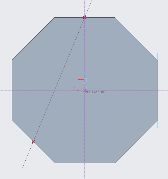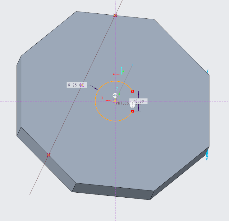 會發現八角形幾何偏角度了,原因是此時的草繪截面是法向於鏈 1。完成後檢視3D狀態。