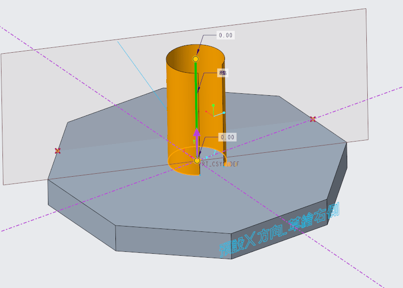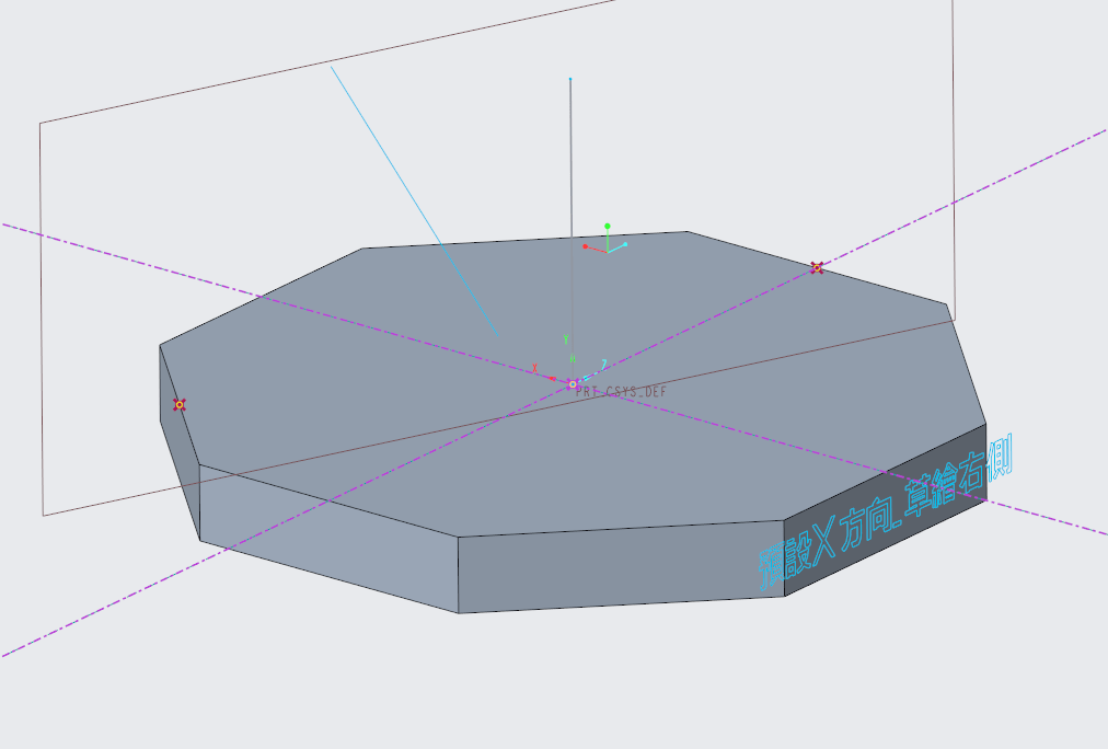 三、指定X方向,草繪截面的指定往右邊的方向。