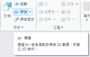 選取曲線軌跡。注意看截面平面控制預設為法向於軌跡。