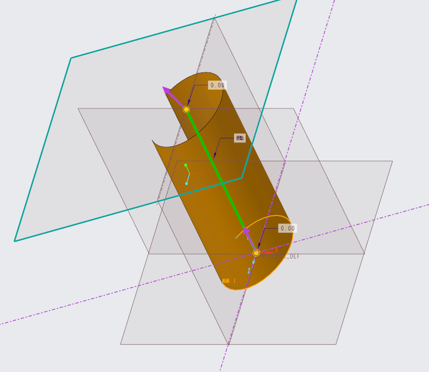 切換至恆定法向並選取曲線軌跡頂端基準平面。