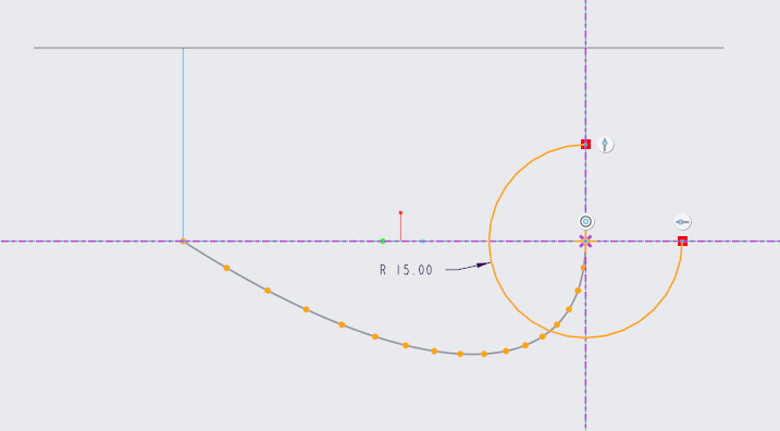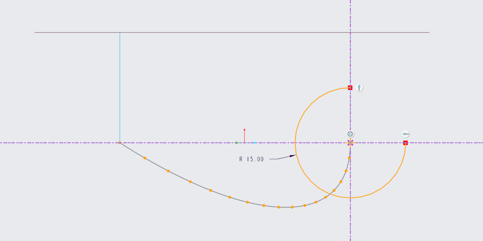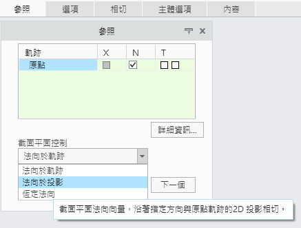 可以發現草繪的截面平面會法向於投影曲線的原點法向方向。