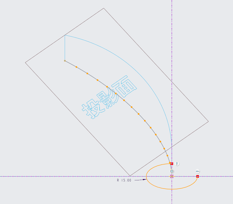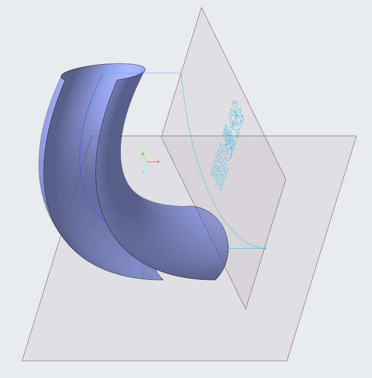 深藍色為掃描軌跡原點曲線,法向投影到基準平面來做草繪截面的定向。