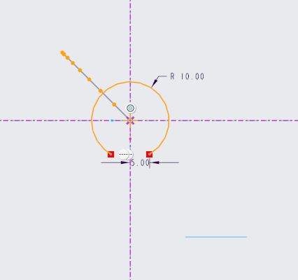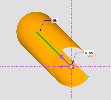 有條件的選項,當原點軌跡是曲面上的線、曲面單側邊、雙側邊、實體邊、曲面相交曲線及投影相交曲線會為預設選項。可使用下一個點選四個不同的方向。