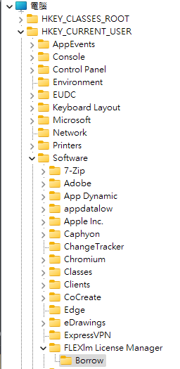 - \HKEY_CURRENT_USER\SOFTWARE\FLEXlm License Manager\