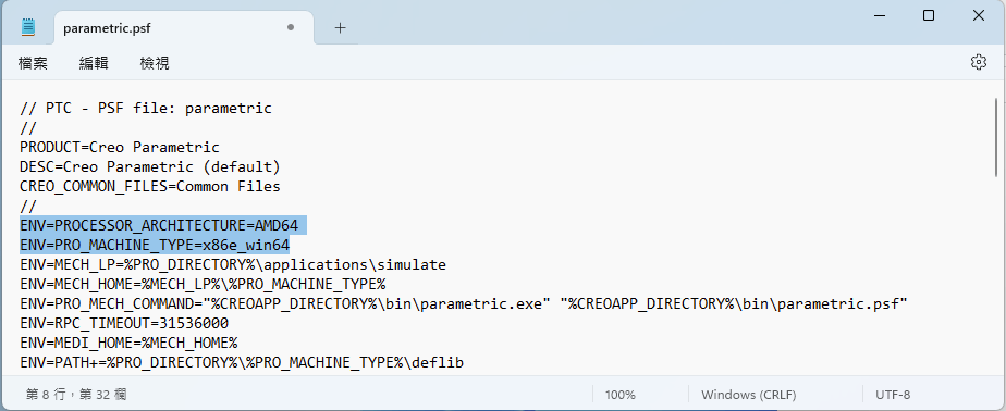 在開頭位置新增兩條參數~一定要在頭這加,不然會出現找不到.dll一些檔案。ENV=PROCESSOR_ARCHITECTURE=AMD64ENV=PRO_MACHINE_TYPE=x86e_win64